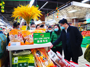 在南湖店消費(fèi)扶貧專區(qū),王司長被琳瑯滿目的扶貧商品所吸引。在運(yùn)城蘋果、新洲雞湯、蔡甸蓮藕、紅安紅薯粉等扶貧商品陳列處,王司長駐足良久、反復(fù)查看,仔細(xì)聽取了中商扶貧工作現(xiàn)狀,并對中商設(shè)置專柜、集中銷售扶貧產(chǎn)品的做法給予了高度肯定。